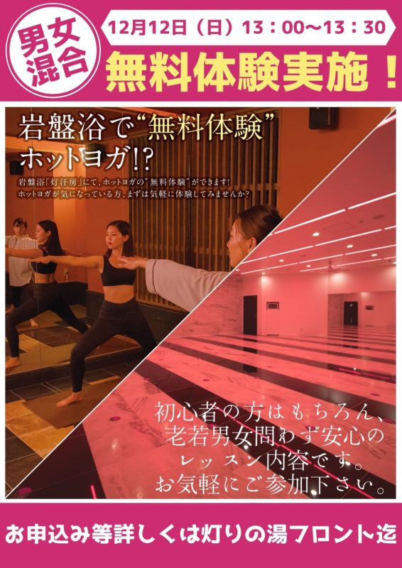 12月12日(日) 岩盤浴ヨガ開催中